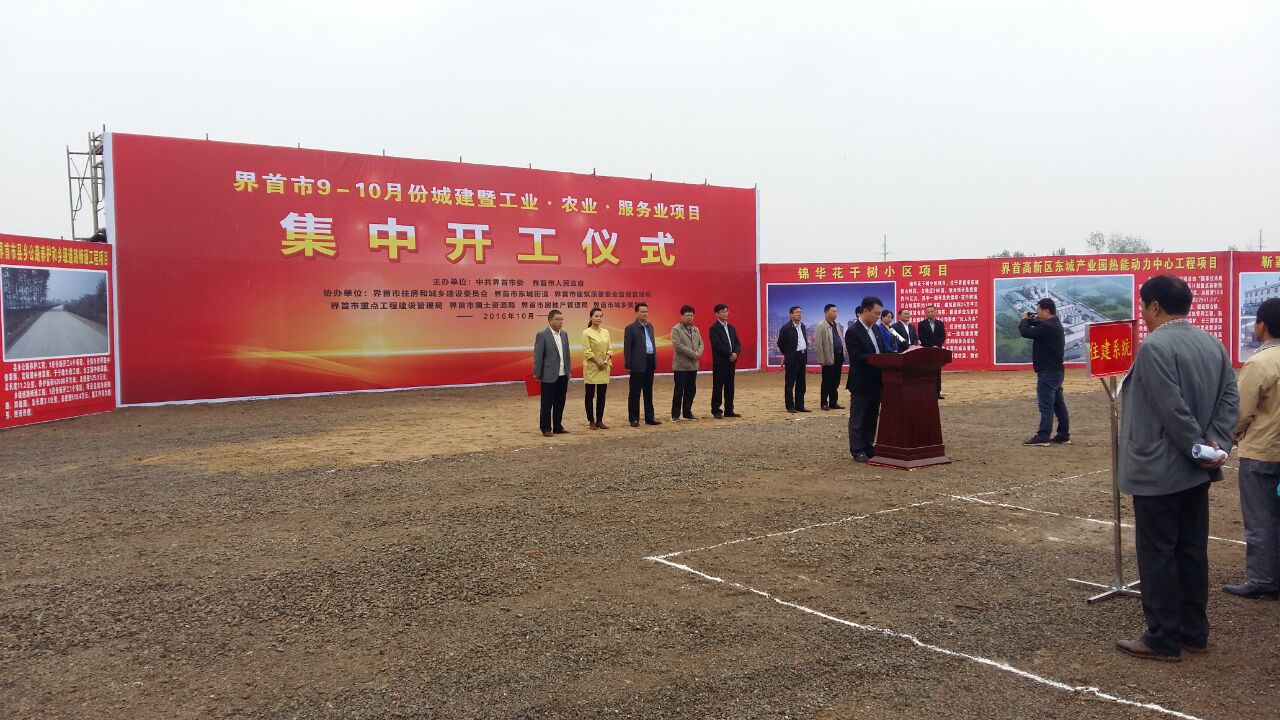 金秋十月,丹桂飄香!10月13日,界首市9—10月份項(xiàng)目集中開工儀式在我司界首錦華•花千樹小區(qū)項(xiàng)目隆重舉行。界首市委書記徐會(huì)東、副書記、市長(zhǎng)何逢陽(yáng)、建委主任徐新士等領(lǐng)導(dǎo)出席開工儀式。 界首市委書記徐會(huì)東主持集中開工儀式。他指出,今年以來(lái),界首市已經(jīng)舉行了7次項(xiàng)目集中開工儀式,目的就是始終保持戰(zhàn)略定力、發(fā)展定力,持之以恒推動(dòng)項(xiàng)目謀劃實(shí)施,始終保持項(xiàng)目建設(shè)高潮,進(jìn)一步激發(fā)全市干部群眾的信心和勇氣,進(jìn)一步激勵(lì)全市干部群眾把心沉下去,把身子彎下去,把頭低下去,把心思和精力集中到抓工作、干事業(yè)上來(lái),推動(dòng)經(jīng)濟(jì)社會(huì)又好又快發(fā)展。界首市長(zhǎng)何逢陽(yáng)在致辭中說(shuō),“百日攻堅(jiān)”行動(dòng)開展以來(lái),全市項(xiàng)目建設(shè)各項(xiàng)工作步伐明顯加快,部門協(xié)作意識(shí)明顯增強(qiáng),工作作風(fēng)明顯轉(zhuǎn)變,工作機(jī)制逐步完善,“百日攻堅(jiān)”行動(dòng)取得了良好效果。 錦華•花千樹小區(qū)項(xiàng)目占地面積300畝,建筑面積25萬(wàn)m2,項(xiàng)目總投資約15億。界首市項(xiàng)目集中開工儀式選址在此進(jìn)行,體現(xiàn)了市里對(duì)該項(xiàng)目的重視。集團(tuán)公司對(duì)此次開工儀式高度重視,選派精兵強(qiáng)將,調(diào)動(dòng)精干力量,前期施工時(shí)對(duì)現(xiàn)場(chǎng)進(jìn)行合理規(guī)劃,依照標(biāo)準(zhǔn)、規(guī)范要求,重點(diǎn)對(duì)文明施工、安全生產(chǎn)、揚(yáng)塵治理、質(zhì)量驗(yàn)收等方面嚴(yán)格控制,使得現(xiàn)場(chǎng)管理井然有序。通過(guò)此次活動(dòng),進(jìn)一步彰顯了項(xiàng)目管理水平,同時(shí)也為項(xiàng)目的創(chuàng)建工作奠定基礎(chǔ)。